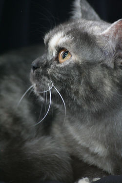 Weiter ist zu ihr zu sagen, dass sie ihre Phasen hat, in denen kein Schritt ohne sie geht und dann hat sie mal wieder Phasen, da möchte sie einfach ihre Ruhe haben und dann gibt es noch eine Phase, da darf man als Mensch nicht durch die Wohnung gehen, ohne auf den Boden zu sehen, denn die Wahrscheinlichkeit ist dann sehr groß, dass ein kleiner schwarz-silberner Blitz einem die Fahrbahn kreuzt.